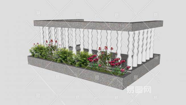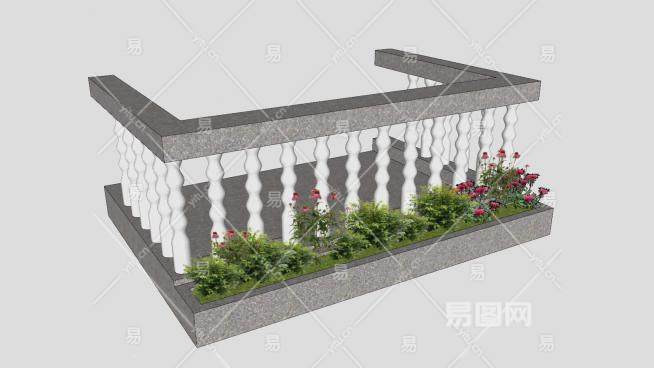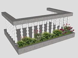 石柱栏杆阳台带花台SU模型下载_sketchup草图大师SKP模型