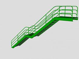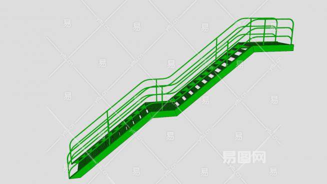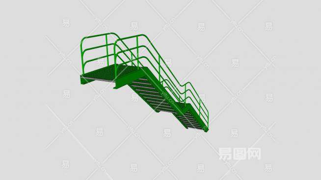 绿色钢制楼梯SU模型下载_sketchup草图大师SKP模型
