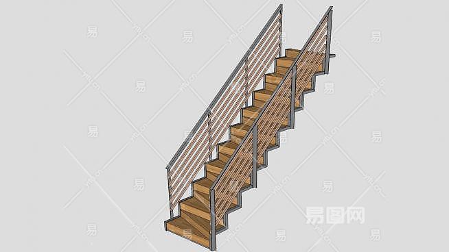 三角踏板钢木楼梯SU模型下载_sketchup草图大师SKP模型