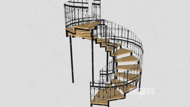 这是欧式金属镂雕梯SU模型,这种梯不能作为主要交通和疏散梯,但由于其流线造型美观、优美、典雅,空间上比较节省。欧式金属镂雕梯SU模型下载_sketchup图大师SKP模型