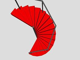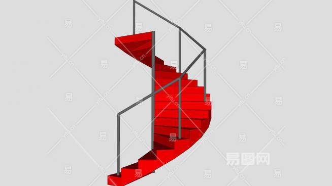 红色金属旋转楼梯SU模型下载_sketchup草图大师SKP模型
