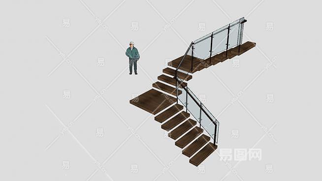 这是木制三跑梯SU模型,在两个板层之间,由三个梯段和两个休息平台组成,常用于层高较大的建筑物中,其中央可设置电梯井。木制三跑梯SU模型下载_sketchup图大师SKP模型