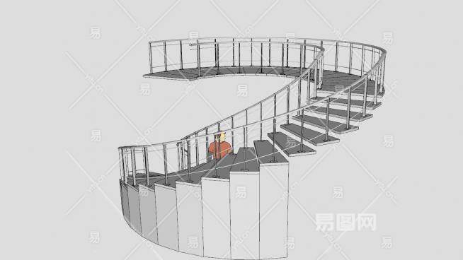 这是旋转式梯SU模型,这种梯不能作为主要交通和疏散梯,但由于其流线造型美观、优美、典雅,空间上比较节省,常用于层数不多的写字居民或作为建筑小品布置在庭院或室内使用。旋转式梯SU模型下载_sketchup图大师SKP模型