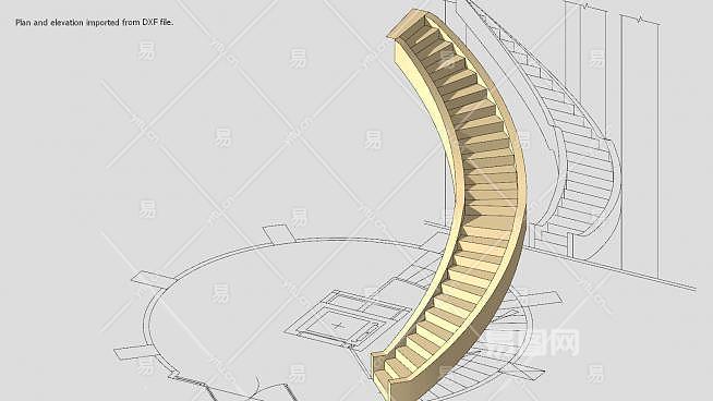 这是现代螺旋梯SU模型,助论坛讨论从CAD计划和海拔,螺旋梯和高程导入DXF文件,梯之前试图模型,精确调整平和垂直两个视图,以确保适当的定位端点引用,看施工步骤的描述。现代螺旋梯SU模型下载_sketchup图大师SKP模型