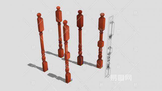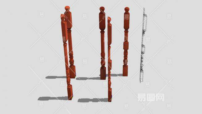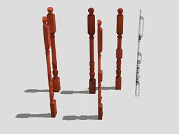 木栏杆SU模型下载_sketchup草图大师SKP模型