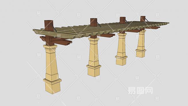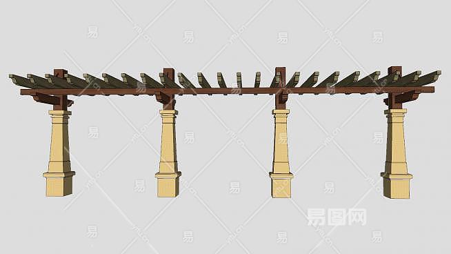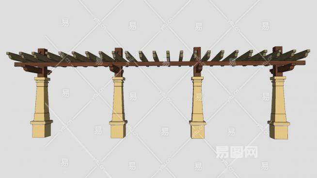欧式单臂防腐木廊架SU模型下载_sketchup草图大师SKP模型