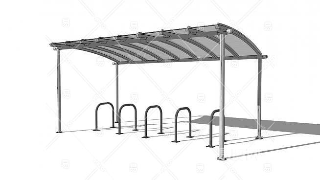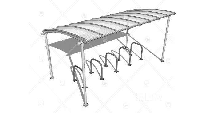 白色自行车架遮阳棚雨棚SU模型下载_sketchup草图大师SKP模型