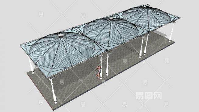 蓝色张拉膜亭子廊架SU模型下载_sketchup草图大师SKP模型