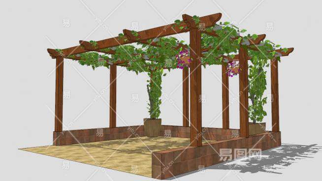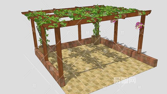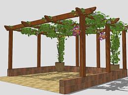方形木花架廊架设计SU模型下载_sketchup草图大师SKP模型