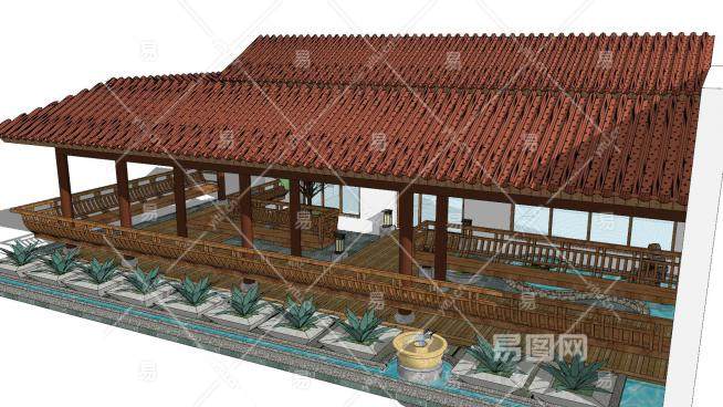 中式休闲景观长廊SU模型下载_sketchup草图大师SKP模型