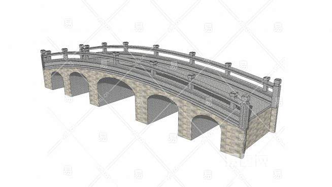 中式石拱桥建筑SU模型下载_sketchup草图大师SKP模型
