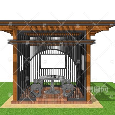 现代实木方亭su模型