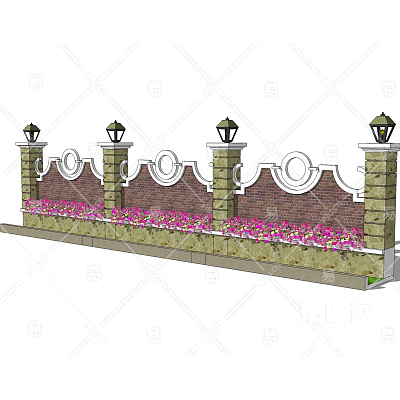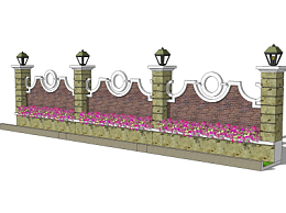 简欧围墙护栏su模型