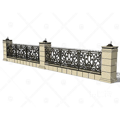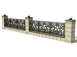 简欧围墙护栏su模型