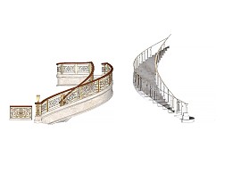 欧式豪华旋转楼梯 楼梯扶手 栏杆SU模型