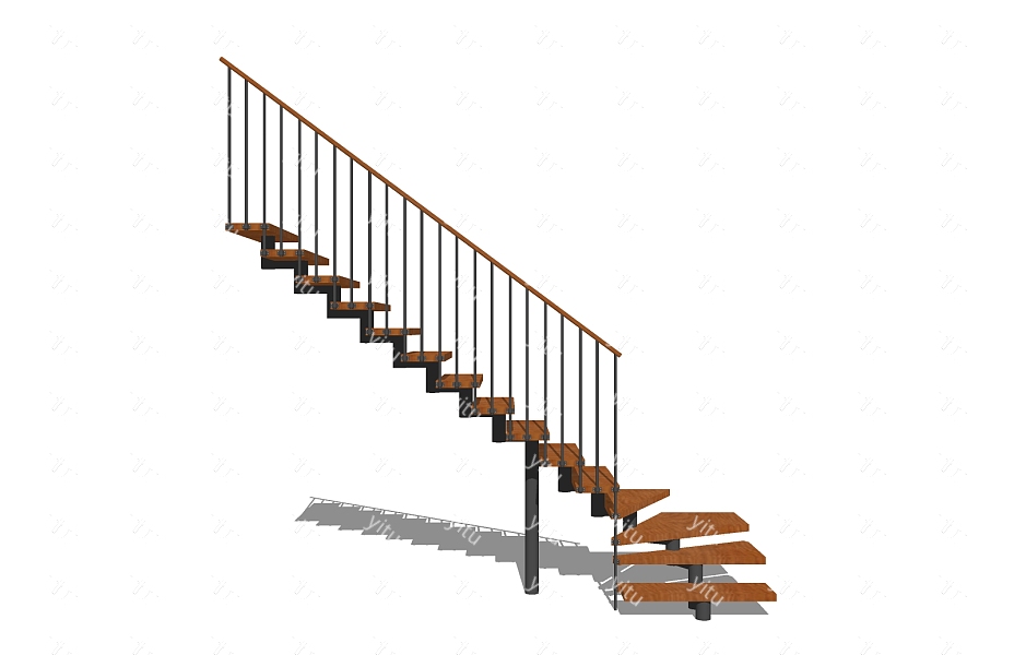 现代钢结构双跑折梯草图大师模型,钢结构双跑折梯sketchup模型免费下载
