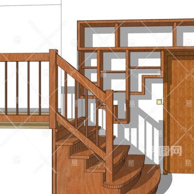 现代实木楼梯su模型