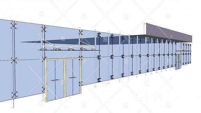 这是现代玻璃幕墙大门SU模型,玻璃幕墙(reflection glass curtainwall),是指由支承结构体系可相对主体结构有一定位移能力、不分担主体结构所受作用的建筑外围护结构或装饰结构。墙体有单层和双层玻璃两种。玻璃幕墙是一种美观新颖的建筑墙体装饰方法,是现代主义高层建筑时代的显著特征。现代玻璃幕墙大门SU模型下载_sketchup图大师SKP模型