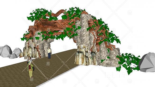 这是森林大门su模型,主题为公园形大门效果设计。榕形奇特,枝叶繁茂,冠巨大而著称。枝条上生长的气生根,向下伸入土壤形成新的干称之为“寄生根”,榕体庞大,可独立成林。森林大门su模型下载_sketchup图大师SKP模型