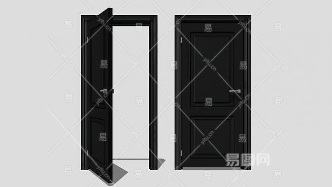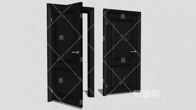 两个黑色单开室内门SU模型下载_sketchup草图大师SKP模型