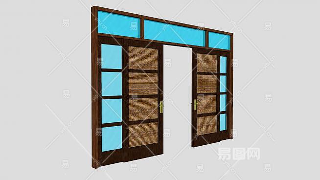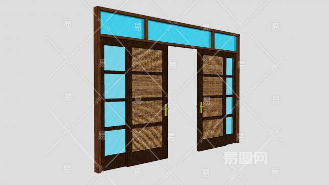 双推移门玻璃门SU模型下载_sketchup草图大师SKP模型