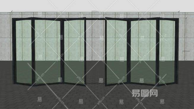 一排打开的玻璃门SU模型下载_sketchup草图大师SKP模型