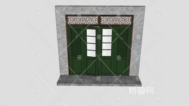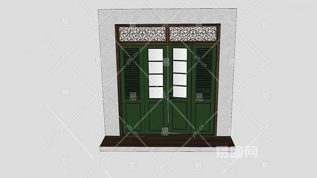 中式百叶窗平开门SU模型下载_sketchup草图大师SKP模型