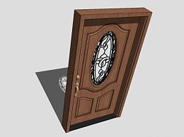 这是铜雕工艺门SU模型,三分之三的椭圆形入口在中等橡木和铸玻璃和古董黄铜硬件。铜雕工艺门SU模型下载_sketchup图大师SKP模型