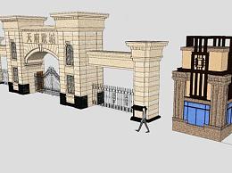 欧式大门岗亭SU模型下载_sketchup草图大师SKP模型
