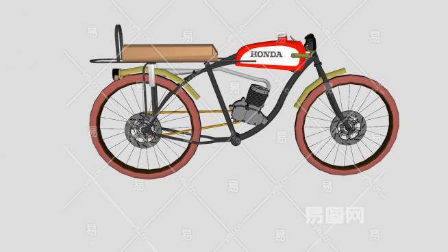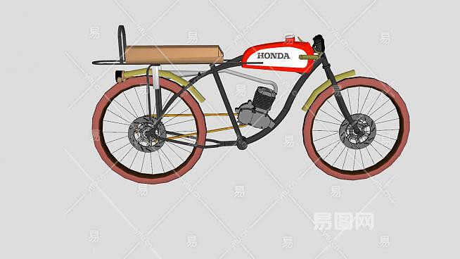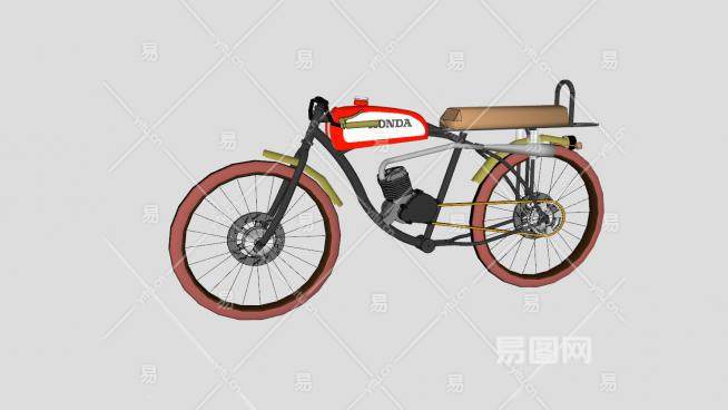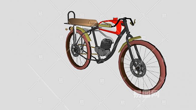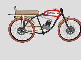 本田老式摩托自行车SU模型下载_sketchup草图大师SKP模型