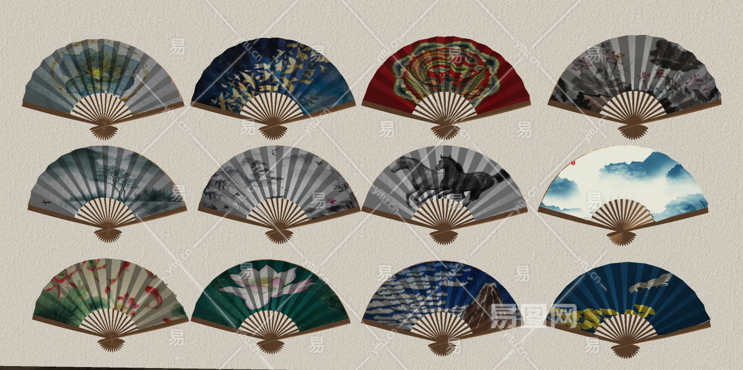 03新中式折扇、扇子,扇面墙饰,挂饰挂件su草图模型下载