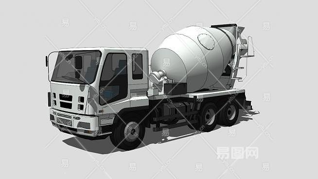 工程车白色水泥车SU模型下载_sketchup草图大师SKP模型