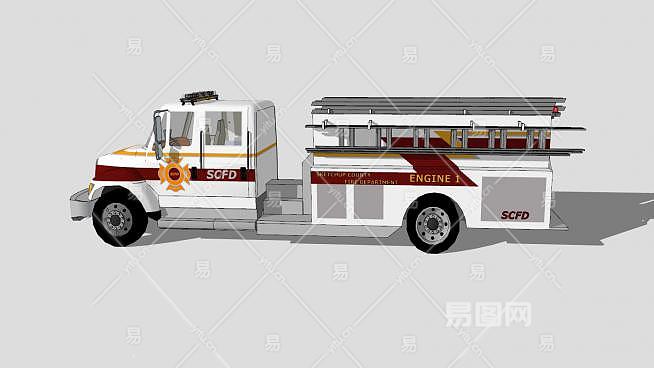 白色抢险消防车SU模型下载_sketchup草图大师SKP模型