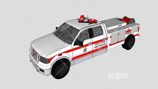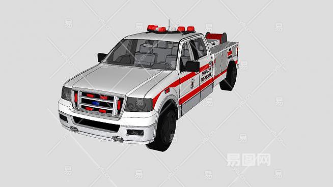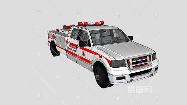 这是小型消防车SU模型,抢险救援消防车具有起吊、自救/牵引、清障、发电、照明等功能。小型消防车SU模型下载_sketchup图大师SKP模型