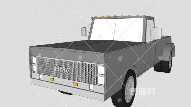 这是简易灰色皮卡SU模型,1987年,遮阳板又回来了,卡车也装上了车顶灯。简易灰色皮卡SU模型下载_sketchup图大师SKP模型