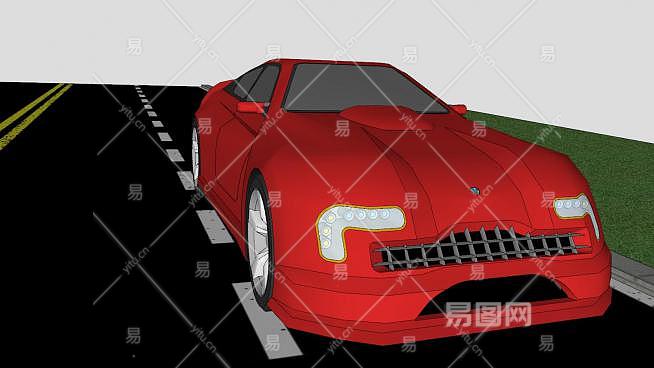 这是道路上的红色跑车SU模型,跑车(Sports Car)是一种以性能划分的车型种类。属于一种低底盘、线条流畅、动力突出的汽车类型,其最大特点是不断追求速度极限。道路上的红色跑车SU模型下载_sketchup图大师SKP模型