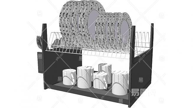 这是生活用品su模型,本实用新型涉及一种能够摆放多个碗且节省厨房空间,并能将碗晾干的晾碗架,属日常生活用品制造领域。生活用品su模型下载_sketchup图大师SKP模型