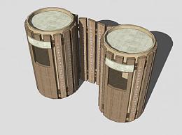 中式木质垃圾箱垃圾桶SU模型下载_sketchup草图大师SKP模型