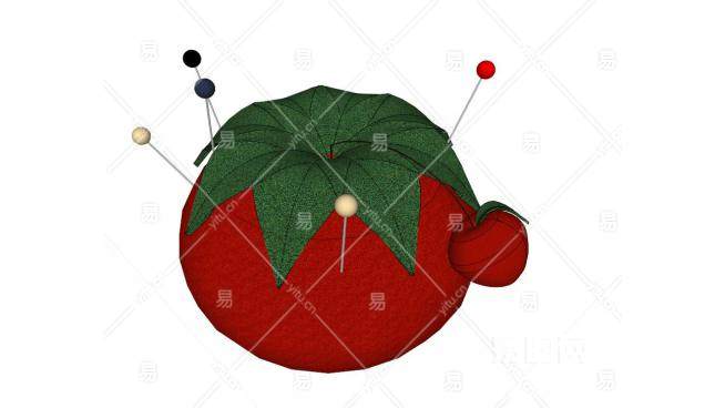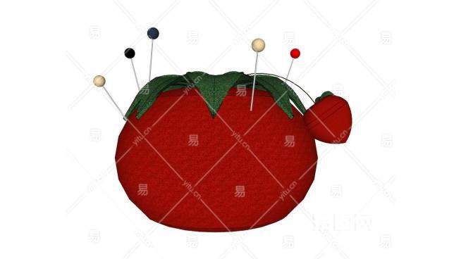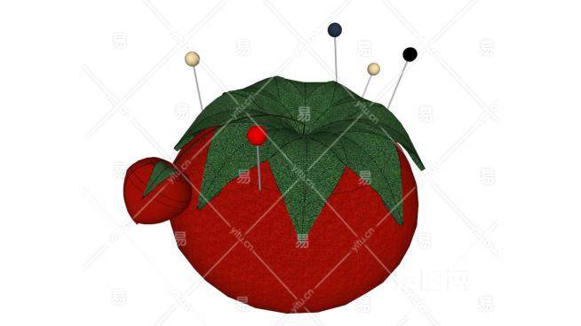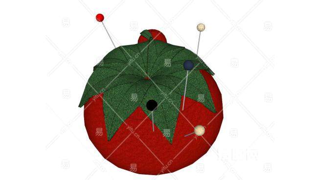 这是针刺生活用品SU模型,红色的西红柿(西红柿)别针垫,绿色的叶子和一个小莓附着在茎上的子。有五枚针扎在垫子上。针刺生活用品SU模型下载_sketchup图大师SKP模型