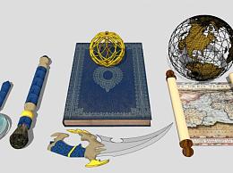 航海工具地图放大镜精美笔记本SU模型下载_sketchup草图大师SKP模型