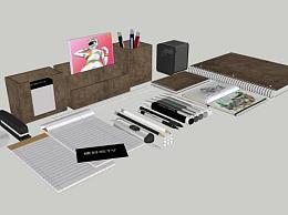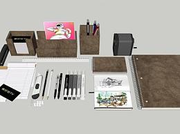 摆放的办公文具SU模型下载_sketchup草图大师SKP模型