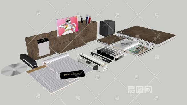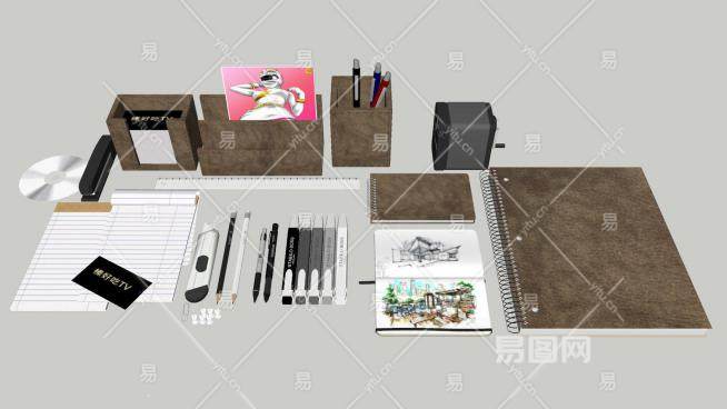 这是摆放的办公文具SU模型,办公文具通常指专门应用于企业办公的文具,具有非常现代化和商业化的气息,以满足办公环境和办公效率为第一要义。办公文具主要的定位群是企业,事业单位,工厂,政府机关和教师学生等。摆放的办公文具SU模型下载_sketchup图大师SKP模型