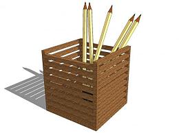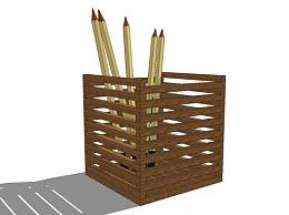 方形木制笔筒铅笔SU模型下载_sketchup草图大师SKP模型