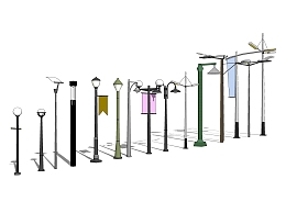 欧式户外景观灯组合草图大师模型,景观灯sketchup模型下载