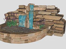 假山流水小景SU模型下载_sketchup草图大师SKP模型