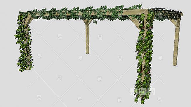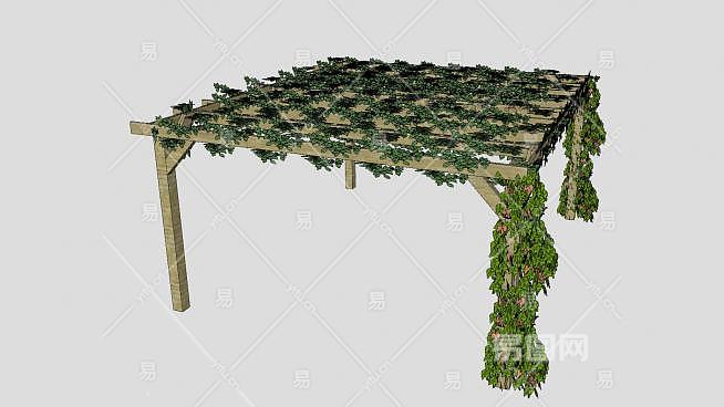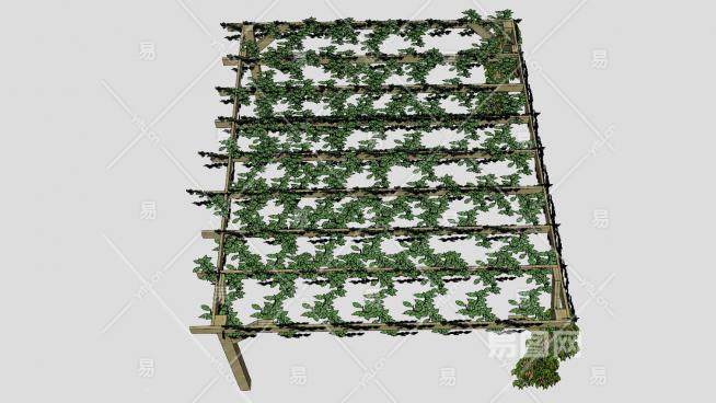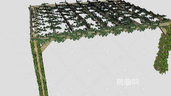 这是木棚架藤蔓SU模型,藤蔓,藤本植物,根生于土壤中的一种易弯或柔软的木本或本的攀缘植物。茎细长,不能直立,具有凭借自身的作用或特殊结构攀附他物向上伸展的攀援习性;没有他物可攀附时,则匍匐或垂吊生长。木棚架藤蔓SU模型下载_sketchup图大师SKP模型