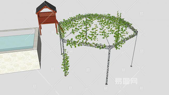 铁艺花架亭子爬藤植物SU模型下载_sketchup草图大师SKP模型