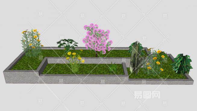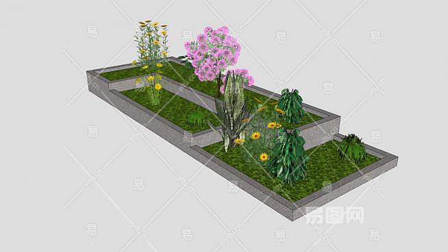 这是现代户外圃SU模型,坛(Flower bed)是在一定范围的畦上按照整形式或半整形式的图案栽植观赏植物以表现卉群体美的园林设施。现代户外圃SU模型下载_sketchup图大师SKP模型