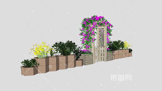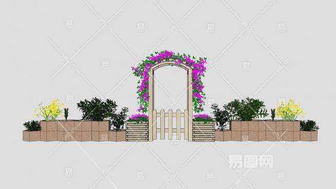 花园花箱花架拱门SU模型下载_sketchup草图大师SKP模型