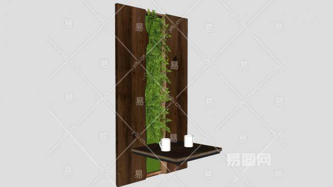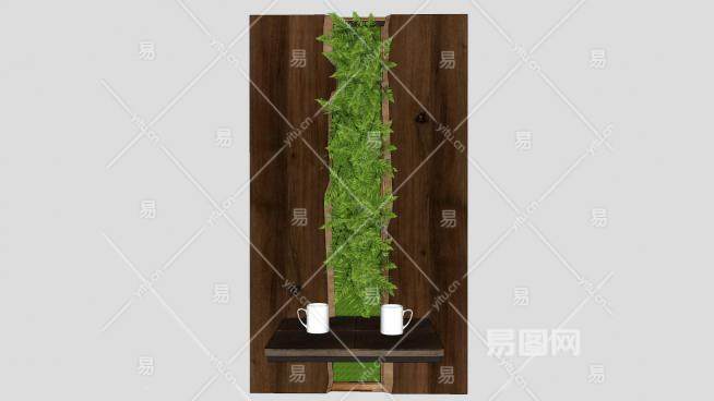 装饰植物墙板桌SU模型下载_sketchup草图大师SKP模型